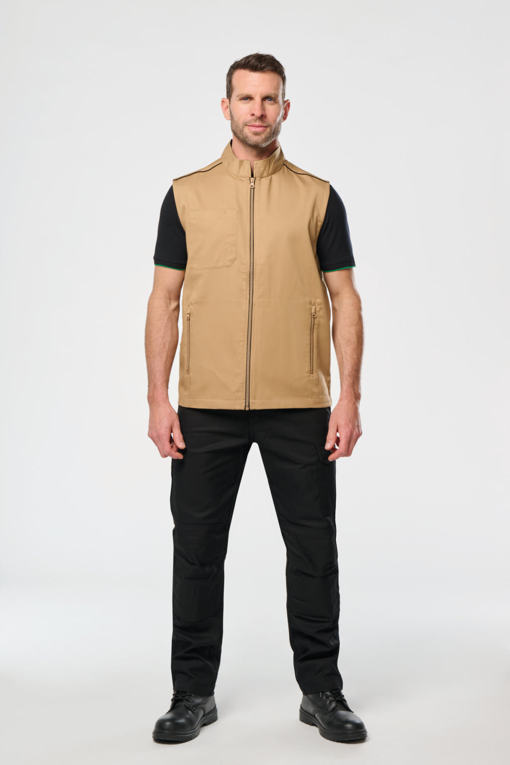 • Design Professionnel : Le jeu de contrastes sur les fermetures zippées, le passepoil aux épaules et l'intérieur du col apporte une touche esthétique soignée qui valorise l'image de votre entreprise.