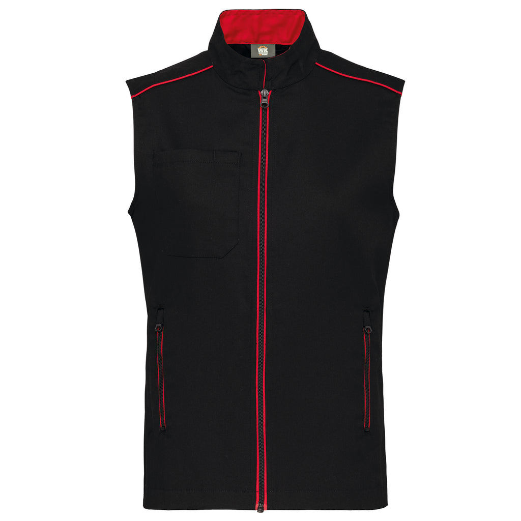Le Gilet WK de la collection Day To Day est l'équipement polyvalent par excellence pour les professionnels qui recherchent une tenue légère, hygiénique et durable. Avec son grammage de 190 g/m², il offre une liberté de mouvement totale tout en garantissant une robustesse adaptée aux sollicitations quotidiennes. Conçu pour être porté jour après jour, il s'intègre parfaitement dans une tenue de travail complète grâce à ses finitions contrastées modernes.
