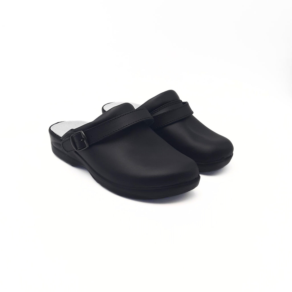 • Hygiène et Santé du Pied : Ce sabot dispose d'une première de propreté en cuir de 2 mm avec voûte plantaire intégrée pour un soutien optimal. La doublure est traitée pour être antibactérienne et antimycosique, garantissant un environnement sain toute la journée.